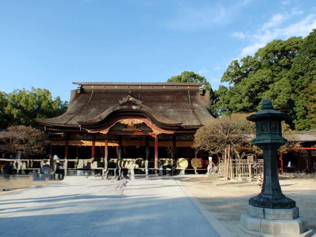 ※太宰府天満宮の場所にはもともとはお寺(安楽寺)があり、その境内に太宰府天満宮が造営されました。明治維新による廃仏毀釈によって安楽寺は廃寺になり、現在では太宰府天満宮だけが残っています。