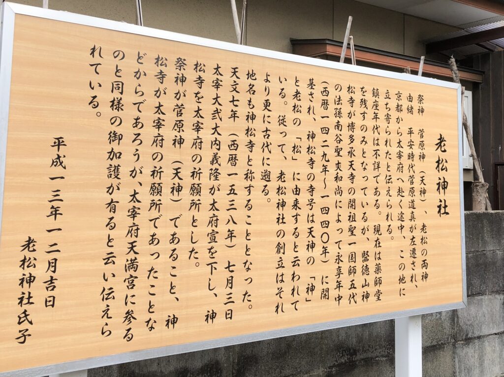 水城にも老松神社があり、ここは道真が博多から船で御笠川をのぼり、この神社近くの渡し場に上陸したと言われています。